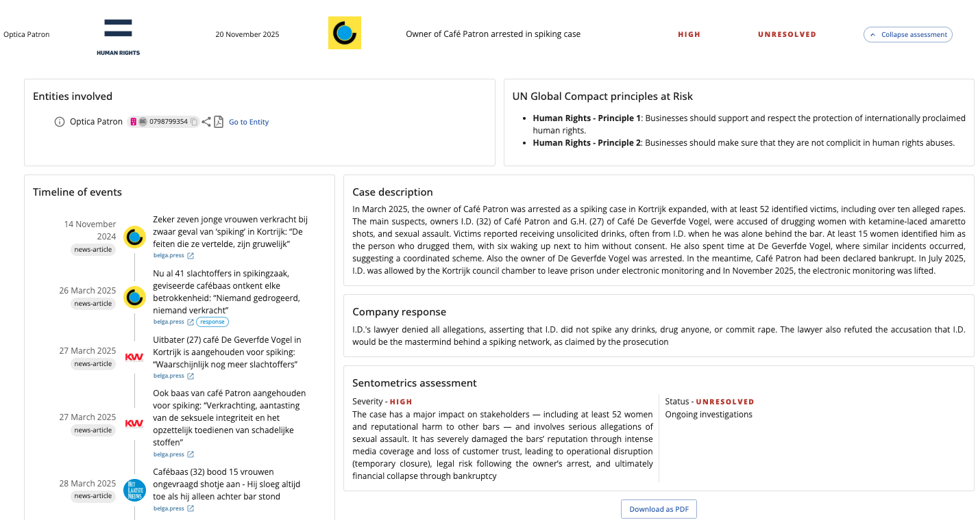 Curated controversy cases assessed by experts through an ESG and reputational-risk lens. Each case is independently verified, includes company response where available, and is rated for severity and status. Downloadable as PDF.