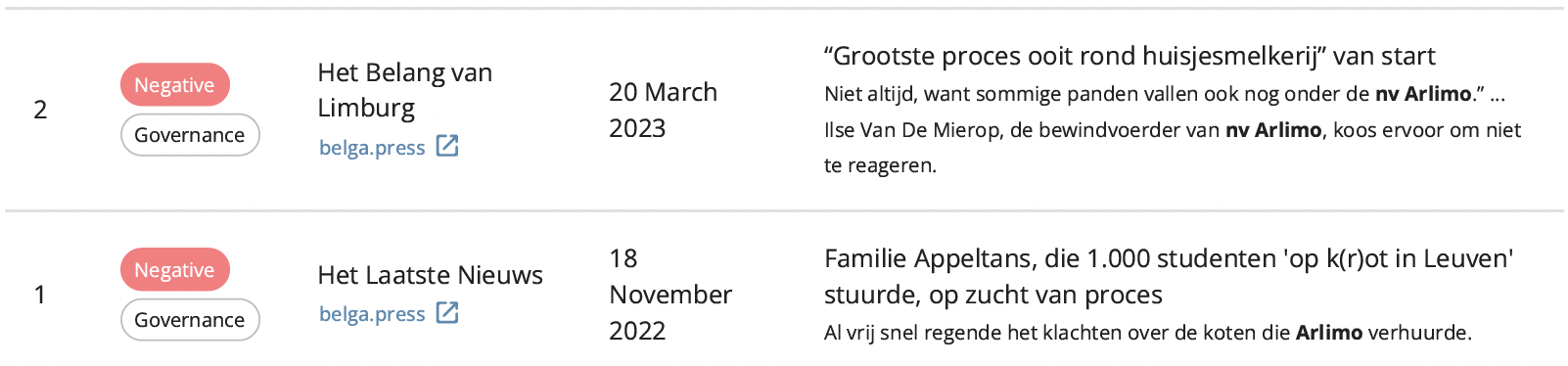 You can drill down into individual articles to understand the underlying events and gain deeper insight into governance risks affecting the company.